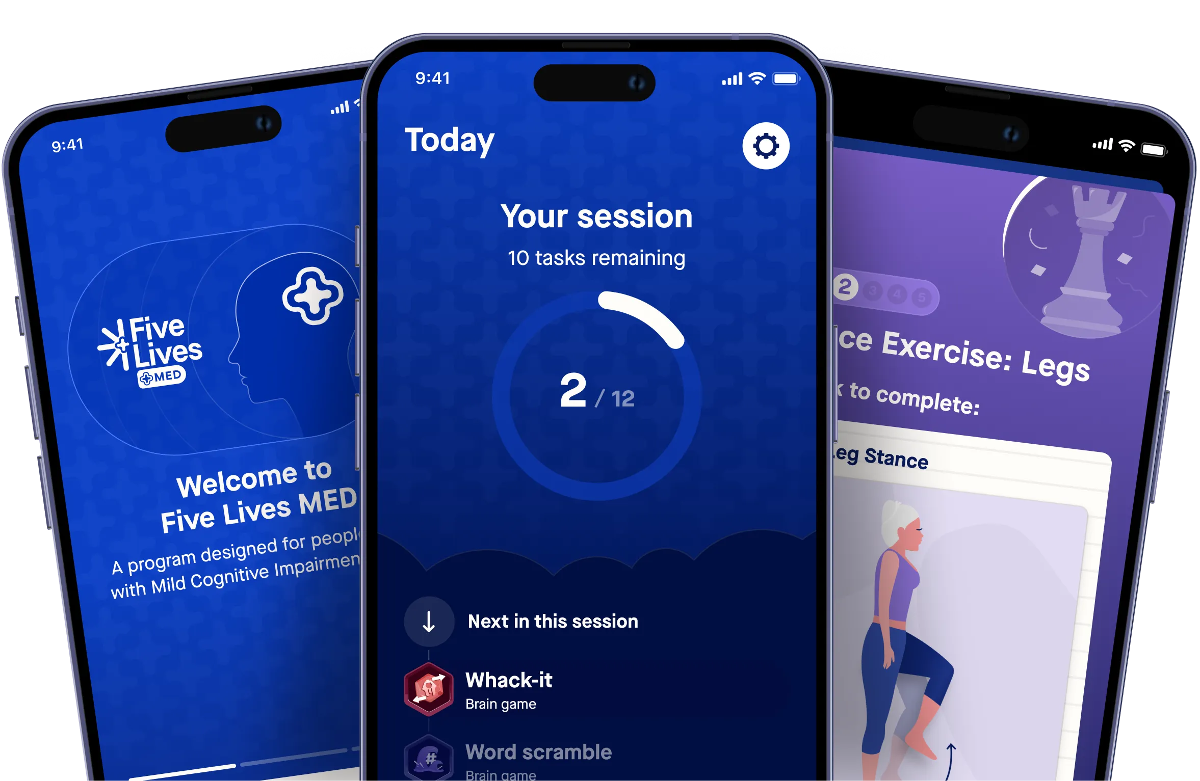 A mobile app specifically designed for people diagnosed with Mild Cognitive Impairment (MCI), developed in partnership with leading memory centers in France and the United Kingdom.